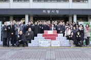 (포탈뉴스통신) 의왕시가 새중앙교회로부터 크리스마스를 맞아 어려운 이웃을 돕기 위한 생필품 꾸러미 ‘사랑의 천사박스’ 1,004상자(약 4,000만 원 상당)를 기부받았다고 밝혔다. 시청 본관 앞 광장에서 열린 전달식에는 새중앙교회 황덕영 담임목사와 나문성·박재관 목사, 이칠수·신종범·김경화 장로 등 새중앙교회 관계자들이 참석해 따뜻한 나눔의 뜻을 함께했다. 새중앙교회 황덕영 담임목사는“크리스마스를 맞아 소외된 이웃들에게 사랑을 전하고자 하는 성도들의 마음을 모아 사랑의 천사박스를 준비했다”며“이 작은 정성이 어려운 이웃들에게 위로가 되고, 따뜻한 겨울을 보내는 데 도움이 되기를 바란다”고 말했다. 방경미 복지문화국장은“해마다 변함없이 나눔을 실천해 주시는 새중앙교회와 성도 여러분께 깊이 감사드린다”며“시에서도 소외되는 이웃이 없도록 지역사회를 더욱 세심하게 살피고, 촘촘한 복지 지원에 최선을 다하겠다”고 밝혔다. 한편, 이날 기부된 생필품 꾸러미는 경기사회복지공동모금회에 기탁 처리된 후, 관내 저소득층 가구에 전달될 예정이다. [뉴스출처 : 경기도 의왕시]