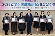 (포탈뉴스통신) 인천시 중구는 올 한 해 어린이 급식환경 개선에 앞장선 모범 어린이급식소에 대한 노고를 격려하고자 지난 25일 중구 제2청 회의실에서 ‘2025년 우수 어린이급식소 표창장 수여식’을 개최했다. 이번 표창은 중구 어린이사회복지급식관리지원센터에 등록된 기관 중 2025년도 위생·안전·영양 분야 점수와 원장·교사·조리원·부모 대상 교육 참여도, 식단 모니터링 점수에서 고득점을 받은 기관을 대상으로 수여됐다. 선정된 우수급식소는 꼬마숲어린이집, 영종바다숲어린이집, 영종수자인어린이집, 오션하임어린이집, 유보라어린이집, 주주어린이집이다. 김정헌 구청장은 “아이들에게 안전한 먹거리를 제공하고자 힘쓴 모든 분에게 감사하다”라며 “앞으로도 중구어린이사회복지급식관리지원센터를 통해 어린이급식소에 대한 영양·위생 관리지원에 최선을 다하겠다”라고 밝혔다. 한편, 중구 어린이사회복지급식관리지원센터는 현재 관내 어린이급식소 115개소를 대상으로 체계적이고 철저한 위생·영양 관리와 대상별 교육 지원을 추진하며, 지역 어린이들의 건강 증진에 이바지하고 있다. 올해 하반기부터는 사회복지급식소 관리 업무