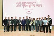 (포탈뉴스통신) 포천시는 지난 1일 시청 대회의실에서 제23회 포천시민의 날을 기념해 2025년 한 해 동안 지역 발전에 기여한 유공자들을 대상으로 표창 수여식을 개최했다. 이날 행사에는 백영현 시장을 비롯해 임종훈 포천시의회 의장, 김용태 국회의원을 대신한 김길주 사무국장과 수상자 등 100여 명이 참석해 자리를 빛냈다. 올해 표창은 △경기도지사 표창 8명 △포천시장 표창 65명 △포천시의회 의장 표창 14명 △국회의원 표창 14명 등 총 101명에게 수여했다. 수상자들은 지역사회 봉사, 문화·체육 진흥, 농업 발전, 지역경제 활성화 등 다양한 분야에서 묵묵히 헌신한 공로를 인정받았다. 백영현 포천시장은 “포천의 오늘을 있게 한 주인공은 바로 시민 여러분”이라며, “각자의 자리에서 보여주신 헌신 덕분에 포천이 함께 성장하는 희망의 도시로 나아갈 수 있었다. 앞으로도 모두가 행복한 도시를 만들기 위해 최선을 다하겠다”고 말했다. 한편, 제23회 포천시민의 날 기념 행사는 10월 12일 포천종합운동장에서 열릴 예정이다. [뉴스출처 : 경기도 포천시]