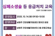 (포탈뉴스통신) 남원주건강생활지원센터는 심정지 등 응급상황에 대한 시민들의 초기 대응능력 향상을 위해 ‘심폐소생술 등 응급처치 교육’을 실시한다. 이번 교육은 10월 14일 센터 2층 운동교육실에서 오전 9시 30분부터 10시 30분까지 1시간 동안 진행된다. 교육 내용은 가슴 압박 소생술과 자동심장충격기 사용법이며, 참가비는 무료다. 센터 내 동아리 회원이 대상이며, 추후 지역 주민을 대상으로 한 교육을 마련할 예정이다. [뉴스출처 : 강원도 원주시]