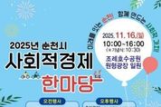 (포탈뉴스통신) 순천시는 오는 16일 조례호수공원 원형광장 일원에서 ‘미래를 잇는 순천! 함께 나누는 사회적 가치’를 주제로 “2025년 순천시 사회적경제 한마당”을 개최한다고 밝혔다. 이번 행사는 전 세대를 아우르는 시민들과 사회적가치를 함께 나누는 참여의 장으로, 올해는 20여 개의 사회적경제기업들이 참여해 다양한 제품과 체험 서비스를 선보인다. 특히 올해 한마당은 사회적가치의 의미를 시민과 함께 나누는 축제형 행사로 꾸며졌다. 미래세대인 청소년을 대상으로 사회적가치 경진대회(온라인 사전 접수)와 청소년 그림그리기 대회가 행사 당일 진행되며, 순천시 사회적경제연합회와 순천자원봉사센터가 함께 마련한 취약계층 어르신을 위한 사회공헌 프로그램도 운영될 예정이다. 또한 기념식에서는 사회적경제기업 및 봉사단체 간 협약식과 기부식, 그리고 비전 선포 퍼포먼스로 사회적경제 의미를 되새기고, 참여자 모두가 사회적가치 실천의 의지를 다지는 시간을 갖는다. 시 관계자는 “이번 행사를 통해 시민들이 사회적경제기업에 대한 관심을 높이고, 지역 경제에 도움이 되는 가치소비 문화가 확산되기를 바란다”고 말했