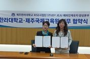 (포탈뉴스통신) 제주도교육청 주국제교육원과 제주한라대학교 지역혁신중심 대학지원체계(RISE)사업단은 1일 한라컨벤션센터에서 이주배경학생의 학교 적응과 학습 지원을 강화하고 외국인 유학생의 지역사회 참여 확대를 위한 업무협약을 체결했다. 이번 협약은 지역사회 이주배경학생을 위한 통역 지원, 학습 조언자 운영, 문화 이해 활동 등을 공동으로 추진하고 제주한라대학교 외국인 유학생의 지역사회 활동 및 봉사활동 참여를 연계함으로써 지역 정주 기반 형성에 기여하는 것을 목적으로 한다. 협약에 따라 제주국제교육원은 이주배경학생 통역 및 조언자 프로그램 운영 계획 수립과 참여 학교·학생 관리, 프로그램 운영 지원을 담당한다. 제주한라대학교는 외국인 유학생 통역 도우미 및 멘토 참여자 모집, 교육, 관리를 맡아 상호 협력 체계를 구축하게 된다. 양 기관은 이주배경학생 통역 지원, 진로·문화·언어 조언자 프로그램 운영, 외국인 유학생의 지역사회 참여 및 봉사활동 연계, 국제교육 및 교류 프로그램 공동 운영 등 다양한 분야에서 협력을 추진할 예정이다. 이번 협약은 체결일로부터 3년간 효력을 가지며 향후 협력 사업의 성