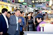 (포탈뉴스통신) 김경일 파주시장은 지난 1일 추석 명절을 앞두고 금촌전통시장과 문산자유시장을 찾아 상인들과 시민들을 만나며 따뜻한 명절 분위기를 조성했다고 밝혔다. 김 시장은 지역화폐(파주페이)로 각종 물품을 구매하며 상인들을 격려했으며, 지역경제 활성화를 위한 민생회복 소비쿠폰 2차 지급에 시민 모두가 빠짐없이 신청해 줄 것과 9월 15일부터 무제한 할인쿠폰을 제공하고 있는 공공배달 앱 ‘배달특급’의 적극적인 이용을 부탁하며 지역경제 현장의 목소리를 청취했다. 김경일 파주시장은 “어려운 경기 여건 속에서도 항상 같은 자리에서 꿋꿋이 일하고 있는 소상공인들이야말로 지역경제의 버팀목”이라며 “소비 위축과 고물가·고금리로 어려움을 겪는 소상공인을 돕고 지역경제 활성화를 위해 최선을 다하겠다”라고 말했다. 파주시는 장기화된 경기 침체 속 민생경제 안정을 위해 올해 전국 최대 규모인 3,189억 원의 파주페이를 발행했다. 특히 올해 설(2월)과 가정의 달(5월)에 이어 추석이 있는 10월에도 파주페이 충전한도를 최대 100만 원으로 확대해 시민의 가계 부담 경감에 힘쓰고 있다. [뉴스출처 : 경기도 파주시]