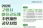 (포탈뉴스통신) 고양특례시는 이웃과 함께 마을 활동에 참여하며 주민 스스로 지역 문제를 해결해 나가는 ‘2026년 고양시 마을공동체 주민제안 공모사업’에 참여할 공동체를 내년 1월 19일부터 모집한다고 밝혔다. 이번 공모사업은 마을공동체 활동을 확산하고 공동체 간 네트워크를 형성해, 주민 주도로 지역사회의 다양한 문제를 해결함으로써 살기 좋은 지역사회를 만들어가기 위해 추진된다. 지원 대상은 고양시에 거주하거나 활동 중인 주민 모임으로 △(1단계) 5인 이상 △(2단계 및 공동주택) 10인 이상의 공동체다. 참여를 희망하는 공동체는 내년 1월 19일부터 21일까지 신청서 등 구비서류를 지참해 고양시자치공동체지원센터로 방문해 신청하면 된다. 심사를 통해 선정된 공동체에는 사업 단계에 따라 최대 200만 원에서 500만 원까지의 사업비가 지원될 예정이다. 또한 공모사업 참여를 희망하는 고양시민과 공동체를 대상으로 내년 1월 2일부터 16일까지 사전컨설팅을 운영한다. 사전컨설팅에서는 공모사업 전반에 대한 설명과 함께 신청서 작성 방법 등에 대한 안내를 받을 수 있다. 고양시 관계자는 “이번