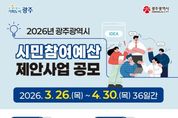(포탈뉴스통신) 광주광역시는 2027년도 예산 과정에 시민참여를 보장하기 위한 ‘시민참여예산 제안사업’을 4월30일까지 접수한다. 시민참여예산은 재정 운영의 투명성을 높이고, 재정민주주의를 강화해 시민 삶의 질을 향상시키기 위한 제도다. 광주시에 거주하는 시민이나 단체는 누구나 사업을 제안할 수 있다. 제안 대상 사업은 단년도에 완료되는 광주시 소관 사무로 ▲시정참여형 ▲청년참여형 등 두 가지를 접수한다. 시정참여형은 시민 생활과 밀접하고 시민 수혜도가 높은 5억원 이하 사업이다. 청년참여형은 일자리, 창업지원, 맞춤형 교육, 창작활동 등 청년 정책 사업으로 예산 제한 없이 제안할 수 있다. 다만, 민원성 사업, 특정단체 중복성 사업, 일회성 공연 축제, 공익에 저해되는 사업 등은 심사에서 제외한다. 참여는 광주시 누리집 시민참여예산시스템 주민e참여시스템 혹은 시민광장 광주온으로 온라인 신청할 수 있다. 전자우편과 우편(광주 서구 내방로111, 예산담당관실) 신청도 가능하다. 광주시는 접수된 제안사업에 대해 소관부서 검토, 시민투표, 시민참여예산위