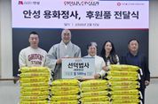 (포탈뉴스통신) 대한불교조계종사회복지재단이 운영하는 안성시노인복지관은 13일 안성 용화정사로부터 경로식당 무료급식을 위한 쌀 500kg을 후원받았다고 밝혔다. 이날 전달식에는 용화정사 정재선 선덕법사와 가섭 안성시노인복지관장을 비롯한 관계자들이 참석해 따뜻한 나눔의 의미를 함께 나눴다. 후원된 쌀은 안성시노인복지관 경로식당을 통해 무료급식을 이용하는 어르신들에게 제공될 예정이다. 용화정사 정재선 선덕법사는 “지역 어르신들께서 식생활 부담을 덜고 건강한 일상을 보내실 수 있도록 함께할 수 있어 뜻깊다”며 “앞으로도 지역사회와 연대해 따뜻한 나눔 활동을 지속해 나가겠다”고 말했다. 가섭 안성시노인복지관장은 “매년 꾸준한 나눔을 실천해 주시는 용화정사에 진심으로 감사드리며, 지역사회의 소중한 후원과 협력을 바탕으로 어르신들의 삶의 질 향상을 위해 더욱 노력하겠다”고 전했다. 한편 용화정사는 수년간 안성시노인복지관에 정기적으로 쌀과 식료품을 기부하며, 경제적 어려움을 겪는 취약계층 어르신의 식생활 지원에 앞장서고 있다. [뉴스출처 : 경기도 안성시]