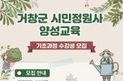 (포탈뉴스통신) 거창군은 정원 전문 지식을 갖춘 시민정원사를 양성하고, 체계적인 정원관리 봉사활동을 활성화해 지역 정원문화 확산과 관련 산업 육성에 도모하기 위해 ‘시민정원사 양성교육 기초과정’ 수강생을 모집한다. 이번 기초과정은 정원에 관심 있는 거창군민이며 누구나 신청 가능하며, 모집인원은 20명 내외이다. 접수는 오는 25일부터 27일까지며, 거창창포원 운영 담당 방문 또는 우편으로 신청할 수 있다. 이번 교육은 3월 20일부터 7월 10일까지 매주 금요일 12시부터 18시까지 거창창포원 다목적실에서 진행될 예정이다. 교육과정은 이론 39시간, 실습 49시간으로 구성되며, 정원식물 이해, 정원식물 관리, 정원조성 방법 등 실무 중심 강의와 현장실습도 포함된다. 교육을 수료한 시민정원사는 향후 거창군 내 다양한 정원봉사 활동과 심화교육 참여 기회도 제공받게 된다. 신동일 환경과장은 “시민정원사 양성교육을 통해 주민들의 정원 전문성을 높이고 지역 정원문화 확산에 기여하길 기대한다”며 “정원에 관심 있는 군민들의 많은 참여를 바란다”고 말했다. [뉴스출처 : 경상남도 거창군]