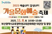 (포탈뉴스통신) 부산광역시교육청 유아교육진흥원은 오는 11월 8일 오전 10시부터 오후 3시까지 학생교육문화회관에서 부산 시내 3~5세 유아와 동반 가족 3,000여 명을 대상으로 ‘예술UP! 감성UP! 가을문화예술축제’를 개최한다. 이번 축제는 가을의 정취 속에서 공연과 체험, 자연이 어우러진 다채로운 프로그램을 통해 유아와 가족이 함께 즐기며 따뜻한 추억을 쌓을 수 있도록 마련했다. 축제는 총 4개 마당으로 구성했다. 공연마당에서는 동요와 함께하는 현악 클래식 연주, 미술 기법을 활용한 드로잉 공연 등 눈과 귀를 사로잡는 무대가 펼쳐지고, 예술창의마당에서는 자개 열쇠고리 만들기, 컵 받침 만들기, 만화경 만들기 등 예술과 과학이 결합된 체험을 통해 유아의 상상력과 창의성을 키운다. 자연마당에서는 가을 북 피크닉과 중고도서 나눔 행사가 열려 책과 자연이 어우러진 여유로운 시간을 제공하며, 어울림마당에서는 에어바운스, 전통·다문화 놀이, 먹거리 나눔 등 온 가족이 함께 참여하고 소통하는 체험형 프로그램이 운영된다. 공연 관람은 사전 신청제로 진행한다. 10월 29일 오전 9시부터 11월 6일 오후 3시까지 부산
