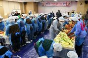(포탈뉴스통신) 수원시 영통구 매탄4동 새마을부녀회는 11월 11일,‘2025 사랑의 김장나눔' 행사를 개최했다. 이번 행사는 새마을부녀회 회원들과 동 단체원 등 총 50여 명이 참여했으며 전날 미리 준비해둔 김장 재료를 이용하여 절인 배추에 양념을 버무려 김장김치를 담갔다. 이날 담근 김장김치는 홀몸어르신 및 저소득층 등 관내 어려운 이웃 250여 세대에 전달됐다. 오정숙 새마을부녀회 회장은 “사랑의 김장 나눔을 통해 관내 이웃들이 추운 겨울이 아닌 따뜻하고 행복한 겨울이 됐으면 좋겠다. 매년 함께해준 부녀회원들 및 단체원들에게도 감사인사를 전한다”고 말했다. 민상희 매탄4동장은 “추운 날씨 속에서도 봉사하는 마음으로 참여해주신 단체원들에게 감사드리며, 오늘 전달해드리는 김장김치가 우리 주변의 어려운 이웃들에게 반가운 선물이 됐으면 좋겠다”고 말했다. [뉴스출처 : 경기도 수원시]