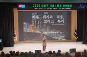 (포탈뉴스통신) 부산 사상구는 11월 25일 오후 2시 사상구청 한마당홀에서 관내 주민과 공무원을 대상으로 ‘기후위기와 적응 그리고 우리’를 주제로 한 ‘2025년 사상구 기후·환경 아카데미’를 개최했다고 밝혔다. 이번 아카데미는 주민들이 기후변화의 심각성을 이해하고, 일상 속 실천 가능한 대응 방안을 모색할 수 있도록 마련된 교육 프로그램이다. 행사에서는 ▲‘하나뿐인 지구영상제’ 우수상 수상작 'Stars on the sea' 상영을 통해 기후위기에 대한 공감대를 확산하고, ▲(주)윌든 김승현 대표의 전문 강연이 이어져 교육의 몰입도를 높였다. 김승현 대표는 ‘기후위기와 적응 그리고 우리’라는 주제로 기후위기의 현주소를 설명하고, 개인과 공동체가 실천할 수 있는 구체적 적응·대응 전략을 제시했다. 참석자들은 기후위기 대응이 단순한 환경 보호를 넘어 삶의 질을 높이는 실천이라는 점에 공감하며 적극적인 참여 의지를 보였다. 조병길 사상구청장은 “이번 아카데미가 주민 스스로 탄소중립과 녹색생활을 실천하는 계기가 되기를 바란다”며 “사상구도 기후위기 적응과 지속 가능한 도시 전환을 위해 다양