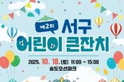 (포탈뉴스통신) 제2회 서구 어린이 큰잔치가 오는 10월 18일 오전 11시부터 오후 3시까지 송도오션파크 힐링의 광장에서 열린다. 올해에는 공연·체험·놀이행사와 부대행사, 연계행사 등이 다채롭게 펼쳐진다. 무대에서는 아이들의 눈높이에 맞춰 키즈 EDM 파티, 어린이 치어리딩, 태권도시범단 공연, 마술 & 저글링 쇼 등이, 32개 체험·홍보 부스에서는 목공예, 디퓨저 만들기, 풍선아트, 심폐소생술 교육 등이 진행된다. 놀이마당에서는 마음껏 뛰놀 수 있는 에어바운스와 공룡 미로찾기, 모형물고기 낚시놀이, 블록놀이 등을 즐길 수 있다. 또한 스탬프투어를 통해 참여 어린이들에게 홍보기념품을 선사한다. 부대행사로는 아이들이 끼와 재능을 발산할 수 있는 ‘꿈끼! 장끼! 대회’와 ‘도전! 아동권리 퀴즈왕’이 진행되는데 참가자에게는 기념품을 제공한다. 또 연계 행사인 전통놀이마당‘너나들이 놀이터(사전 접수)’와‘원북원 부산 올해의 책’ 교환 ‘송도사랑 알뜰도서 교환전(헌책 지참)’, 2025년 서구사랑 가족사진 공모전 수상작 전시회도 기대를 모은다. 공한수 서구청장은“아이들