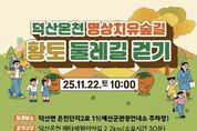 (포탈뉴스통신) 예산군보건소는 11월 22일 오전 10시 덕산면 명상치유숲길에서 둘레길 걷기 행사를 개최한다고 밝혔다. 이번 행사는 오전 10시부터 12시까지 2시간 동안 진행되며, 출발지는 덕산면 온천단지2로 11에 위치한 예산군관광안내소 뒤 주차장이다. 걷기 행사 참가 희망자는 보건소(041-339-6076)로 전화 신청하거나 안내문 내 정보무늬(QR코드)를 통해 사전 접수하면 된다. 이번 행사는 치매극복 인식개선과 연계해 운영되며 △둘레길 걷기 △건강홍보관 운영 △다양한 만들기 체험 △흡연예방 버블공연 및 마술쇼 등 풍성한 체험과 볼거리를 제공한다. 명상치유숲길은 온천둘레길(1100m), 잣나무숲길(650m), 메타세쿼이아길(450m) 등 총 2.2㎞ 구간으로 조성돼 있다. 특히 구간마다 소나무, 잣나무, 메타세쿼이아 숲이 어우러져 있어 일상에 지친 마음을 치유하는 공간으로 사랑받고 있으며, 덕산온천 족욕장과 황톳길(530m), 마사토길(120m) 등이 함께 조성돼 걷기와 힐링을 동시에 즐길 수 있는 대표적인 걷기 코스로 자리매김하고 있다. 보건소 관계자는 “군민의 걷