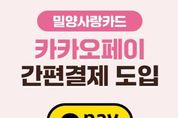 (포탈뉴스통신) 경남 밀양시는 밀양사랑카드 이용자의 결제 편의성을 높이기 위해 오는 23일부터 카카오페이 간편결제 서비스를 도입한다고 밝혔다. 이번 서비스 도입에 따라 이용자들은 카카오페이 앱 내 결제수단에 밀양사랑카드를 미리 등록하면, 별도의 실물카드 소지 없이도 바코드나 QR 스캔 방식 등으로 간편하게 결제할 수 있게 된다. 그동안 실물카드를 소지해야 했던 번거로움이 해소되어, 모바일 기반의 결제 환경이 크게 향상될 것으로 보인다. 본 서비스는 3월 23일 오전 9시부터 본격적으로 시행된다. 시는 최근 급증하는 비대면·모바일 중심의 소비 트렌드에 발맞춰 이번 서비스를 도입함으로써, 젊은 층을 비롯한 다양한 시민들의 접근성을 높이고 지역 화폐인 밀양사랑카드의 사용 활성화에도 크게 기여할 것으로 기대하고 있다. 밀양시 관계자는 “이번 카카오페이 간편결제 도입으로 시민들이 보다 편리하게 밀양사랑카드를 이용할 수 있게 됐다”며 “앞으로도 다양한 결제수단과의 연계를 통해 이용 편의성을 지속적으로 개선해 나가겠다”고 말했다. [뉴스출처 : 경상남도밀양시]
