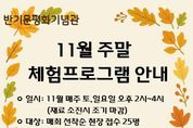 (포탈뉴스통신) 음성군 제8대 유엔사무총장 반기문 평화기념관에서는 관람객을 위해 11월 주말 무료 체험 프로그램을 운영한다. 해당 프로그램은 11월 1일부터 30일까지 매주 토·일요일(오후 2시~4시, 재료 소진 시 조기 마감)에 진행된다. 매회 선착순 25명을 대상으로 당일 오후 2시 현장에서 접수하며, 누구나 무료로 참여할 수 있다. 토요일에는 그림이 인쇄된 냅킨을 활용해 손거울 표면을 꾸며보는 체험인 ‘냅킨 손거울 만들기’ 프로그램을 진행한다. 일요일에는 바느질 없이 손으로 끈을 매듭지어 다양한 형태를 만드는 ‘마크라메’공예 기법을 활용해 작은 인형을 제작해 보는 체험인 ‘마크라메 걱정 인형 만들기’ 프로그램을 운영한다. 완성된 인형은 장식용 또는 감정지지 소품으로 활용할 수 있다. 장정자 평생학습과장은 “다가오는 주말에는 반기문 평화기념관에 방문해 전시 관람도 즐기고, 체험 프로그램을 통해 좋은 추억을 만들어 가시길 바란다”고 밝혔다. [뉴스출처 : 충청북도 음성군]