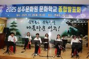(포탈뉴스통신) 성주문화원(원장 이창길)은 지난 20일 성주문화원 3층 강당에서'2025 성주문화원 문화학교 종합발표회'를 성황리에 개최했다. 이번 발표회는 1년간 다양한 강좌에서 갈고닦은 실력을 선보이며 지역문화의 깊이를 더하는 화합의 장으로 마련됐다. 문화학교는 민요, 사물놀이, 한국무용, 해금, 다도, 아코디언 등 전통·예술·생활문화를 아우르는 15개 강좌로 구성되어 있으며, 특히 수강생의 대부분이 중·장년층과 어르신들로 구성돼 있음에도 불구하고, 배우고자 하는 열정과 참여 의지가 매우 높다는 점이 특징이다. 이들의 꾸준한 참여 덕분에 지역 문화교육 프로그램이 연중 활기를 잃지 않고 운영되고 있다. 이날 발표회에서는 ▲사물놀이 ▲민요·아리랑 ▲아코디언 ▲한국무용 ▲해금 연주 ▲다도 시연 등 다채로운 무대가 펼쳐졌으며, 서예반·서양화반·중국공필화반의 작품 전시도 열려 관객들의 큰 관심을 모았다. 이창길 성주문화원장은“문화학교는 어르신들의 배움의 열정이 가장 빛나는 공간”이라며 “함께 배우고 어울리는 모습이 성주 문화의 힘”이라고 말했다. 또한 내년에도 더욱 유익한 강좌로 군민들을 찾아가겠다고 밝혔다. &nb