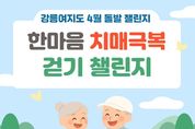 (포탈뉴스통신) 강릉시는 시민의 건강 증진을 도모하고, 치매에 대한 사회적 관심을 높이기 위해 오는 10일부터 29일까지 ‘2026년 한마음 치매극복 걷기 행사’를 개최한다. 이번 행사는 모바일 앱을 활용한 비대면 걷기와 체험형 걷기 프로그램을 병행해 시민 참여를 확대할 예정이다. ‘한마음 치매극복 걷기 챌린지’는 10일부터 16일까지 진행되며, 워크온 앱의 ‘강릉여지도 걷기 커뮤니티’에 참여해 7일 동안 총 5만 보 달성을 목표로 걸으면서 ‘기억’이나 ‘예방’처럼 치매 관련 단어가 들어간 물건을 찾아 사진을 촬영해 인증하면 된다. 챌린지 성공자 중 150명을 추첨해 선물을 증정할 예정이다. 29일에는 ‘국립대관령치유의숲’에서 ‘숲 체험 힐링 걷기’ 프로그램이 진행된다. 경도인지장애를 진단받은 분과 그 가족을 대상으로 20명 규모로 운영하며, 울창한 숲길을 걸으며 몸과 마음을 돌보는 시간을 갖게 된다. 참가비는 무료이며 참여 신청은 20일(월)까지 강릉시 치매안심센터로 전화하면 된다. 김유영 건강증진과장은 “이번 한마음 치매극복 걷기 행사가 시민들의 건강 증진