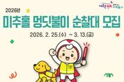 (포탈뉴스통신) 미추홀구종합자원봉사센터는 3월 13일까지 ‘2026년 미추홀구 멍딧불이 순찰대’로 활동할 반려 가족을 모집한다고 밝혔다. 반려견 순찰대는 반려견과 함께 산책하며 지역 내 위험 요소를 발견하고 관계 기관에 신고하는 등 생활 속 안전 지킴이로, 올바른 반려문화 확산과 지역 안전망을 구축할 계획이다. 이번 모집을 통해 총 30가정(60명 이내)을 선발하며, 미추홀구에 거주하고 정기적인 순찰 활동이 가능한 반려견 가족이면 신청할 수 있다. 선발된 반려견과 반려인은 발대식 이후 정식 순찰대로 활동하게 되며, 주 1회 이상 순찰을 진행하고, 연 1회 반려견 문화축제 ‘미추홀 댕댕 페스타’를 통해 반려인 간의 교류를 활성화하고, 성숙한 반려문화를 조성해 나갈 계획이다. 센터 관계자는 “멍딧불이 순찰대는 반려견과 함께하는 일상 속 산책이 곧 지역을 지키는 자원봉사 활동으로 이어지는 의미 있는 사업”이라며 “많은 반려 가족이 참여해 안전하고 따뜻한 미추홀구를 함께 만들어가길 바란다.”고 전했다. 자세한 사항은 미추홀구종합자원봉사센터 홈페이지에서 확인할 수 있다. [뉴스출처 : 인천시