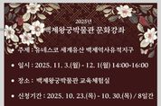 (포탈뉴스통신) 익산시가 세계유산 등재 10주년을 맞아 '유네스코 세계유산 백제역사유적지구'의 가치와 의미를 시민들과 공유한다. 익산시는 백제왕궁박물관에서 오는 11월 3일부터 12월 1일까지 월요일 오후 2시에 문화강좌를 운영한다고 23일 밝혔다. 이번 강좌는 백제왕궁박물관에서 진행되는 '세계유산 등재 10주년 특별전'과 연계한 교육 프로그램이다. 백제의 찬란한 역사와 세계유산의 보존 가치를 주제로 총 4회에 걸쳐 운영된다. 강좌는 △11월 3일 '세계유산의 중요성'(김낙중, 전북대학교) △11월 10일 '세계유산 백제역사유적지구-부여를 중심으로'(전용호, 국가유산청) △11월 24일 '세계유산 백제역사유적지구-익산을 중심으로'(문이화, 원광대학교 마한·백제문화연구소) △12월 1일 '세계유산 백제역사유적지구-공주를 중심으로'(최경환, 국립공주박물관)로 구성됐다. 강좌 참가 희망자는 오는 30일까지 백제왕궁박물관 누리집 교육프로그램을 통해 신청할 수 있으며, 당일 현장 접수도 가능하다. 더욱 자세한 내용은 백제왕궁박물관으로 문의하면 된다. 익산시 관계자는 "