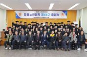 (포탈뉴스통신) 전남 함평군 제44기 노인대학이 9개월간의 배움의 여정을 마무리하며 활기찬 노년문화 확산에 앞장서고 있다. 함평군은 14일 “제44기 노인대학 졸업식이 지난 어르신 졸업생 44명이 참석한 가운데 대한노인회 함평군지회 대강당에서 성황리에 마무리됐다”고 밝혔다. 함평군 노인대학은 (사)대한노인회 함평군지회(지회장 조용무)가 지역 어르신들이 잠재능력을 개발하고 폭넓은 교양과 지식을 습득해 활기차고 행복한 노년을 보낼 수 있도록 운영 중인 ‘평생학습’ 프로그램이다. 교양, 건강관리, 문화예술 등 다채로운 강좌를 통해 어르신들의 건전한 여가선용과 평생학습의 장으로 자리매김했으며, 세대 간 소통과 지역사회 참여 확대에도 기여하고 있다. 특히, 3월 개강한 제44기 노인대학은 지난 한 해 동안 배움의 열정을 이어온 어르신들의 노력이 결실을 맺는 자리로, 노인대학이 지역 평생교육의 중심 역할을 하고 있음을 보여줬다. 이날 졸업식에는 이상익 함평군수, 조용무 (사)대한노인회 함평군지회장을 비롯한 임원 및 졸업생 가족 등 60여 명이 참석해 졸업생들의 새로운 출발을 축하했다.