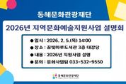 (포탈뉴스통신) 동해문화관광재단은 지역 예술단체의 원활한 사업 추진을 지원하기 위해 오는 2월 5일 ‘2026 지역문화예술지원사업 설명회’를 개최한다고 밝혔다. 이번 설명회는 2026년 지역문화예술지원사업의 운영 방향과 주요 변경 사항을 사전에 안내하고, 사업 신청부터 선정, 집행, 정산에 이르기까지 전반적인 절차와 기준을 공유하기 위해 마련됐다. 설명회는 2월 5일 오후 2시, 꿈빛마루도서관 3층 대강당에서 열리며, 관내 지역예술단체 대표자와 실무자를 대상으로 진행된다. 이날 설명회에서는 ▲지역문화예술특성화지원사업 및 찾아가는 문화활동 지원사업의 주요 변경 사항 ▲지원자격 강화 및 지원금 조정 내용 ▲홍보 및 지역 환원 계획 수립 기준 ▲사업 공고ㆍ접수ㆍ운영ㆍ정산 등 사업 전반에 대한 안내가 이루어질 예정이다. 또한 2026 지역문화예술지원사업 운용지침 안내 책자도 함께 배포할 계획이다. 설명회 이후에는 질의응답 시간을 통해 사업 전반에 대한 궁금증을 해소하고, 현장의 의견을 청취하는 소통의 자리도 마련된다. 재단 관계자는“이번 설명회를 통해 주요 변경 사항과 운영 기준