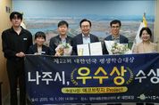 (포탈뉴스통신) 전라남도 나주시가 교육부 주관 ‘제22회 대한민국 평생학습대상’에서 환경과 자원순환 학습을 생활 속 실천으로 확산한 성과를 전국적으로 인정받았다. 나주시는 지난 1일 정부세종컨벤션센터에서 열린 ‘제22회 대한민국 평생학습대상’ 시상식에서 ‘우수상’을 수상했다고 2일 밝혔다. 이번에 수상한 ‘에코브릿지 Project’는 경력단절여성, 청소년, 장애인, 어르신 등 다양한 계층을 대상으로 재활용, 분리배출 교육과 미디어아트 융합 체험을 운영해 시민들의 자발적 참여와 생활 속 실천을 끌어낸 혁신적 평생학습 프로그램으로 평가받았다. 대한민국 평생학습대상은 전국 지자체와 기관 및 단체의 우수 사례를 발굴하고 확산하기 위해 2004년부터 매년 개최되는 국내 최고 권위의 평생학습 시상제도다. 나주시는 지난 2022년 제19회 대회 우수상 수상에 이어 올해 다시 한번 성과를 거두며 ‘시민 모두가 배우고 실천하는 학습공동체’로서의 위상을 공고히 했다. 윤병태 나주시장은 “이번 수상은 평생학습을 통해 지속 가능한 지역 발전을 만들어가는 나주시민 모두의 성과”라며 “평생학습 기반의 자원순환,