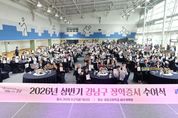 (포탈뉴스통신) 꿈이 모이는 도시, 미래를 그리는 강남구가 지난 27일 중동고등학교 실내체육관에서 ‘2026년 상반기 강남구 장학증서 수여식’을 열고 장학생 202명에게 총 3억7200만 원의 장학금을 전달했다. 이날 수여식은 장학생과 후원자, 관계자들이 한자리에 모여 학생들의 꿈과 도전을 함께 응원하는 자리로 마련됐다. 현장에서는 장학증서 수여와 함께 특별 강연과 소통 프로그램도 진행돼 강남형 장학사업의 의미를 더했다. 강남형 장학사업은 소득 기준 중심 지원을 넘어 학업, 예술, 체육, 과학, 기능 등 다양한 분야의 재능을 가진 학생을 발굴·지원하는 강남구의 대표 교육정책이다. 특히 올해는 장학금 재원 전액을 외부 기탁과 민간 후원으로 마련해 지역사회가 미래 인재를 함께 키워내는 장학사업으로 자리매김하고 있다는 점에서 의미를 더한다. 또한, 장학생은 지역사회에 재능기부로 다시 참여하는 선순환 구조를 지향한다. 조성명 강남구청장은 “강남형 장학사업은 학생 개인의 성장을 넘어 지역사회의 미래를 함께 키우는 투자”라며 “더 많은 학생이 꿈을 펼치고, 다시 지역사회에 기여하는 선순환 장학모델로 발전시켜 나가겠다”고