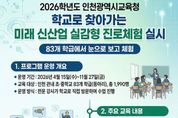 (포탈뉴스통신) 인천광역시교육청은 오는 15일부터 인천 관내 초·중학생교 83개 학급(동아리) 학생 1,990명을 대상으로 ‘학교로 찾아가는 미래 신산업분야 실감형 진로체험’을 운영한다. 이번 프로그램은 학생들이 미래 직업 세계를 깊이 있게 이해하고 자기주도적 진로 개발 역량을 갖출 수 있도록 디지털 기술 기반의 체험형 교육을 지원한다. 프로그램은 실감형 직무체험과 인천사이버진로교육원의 탐색·설계 활동으로 구성됐으며, 특히 전문 강사와 담임교사의 협력 수업으로 운영되어 학교 교육과정과의 연계성을 높였다. 학생들은 VR 기기를 통해 실제 현장과 유사한 환경에서 다양한 직무를 경험하고, 또한 사이버진로교육원을 활용해 자신의 흥미와 강점을 발견하고 이를 토대로 자기주도적으로 진로를 설계하게 된다. 인천시교육청 관계자는 “이번 프로그램이 학생들에게 미래 직업세계에 대한 이해를 넓히고, 스스로 진로를 설계하는 힘을 키우는 계기가 되길 바란다”며 “앞으로도 디지털 기술을 활용한 체험 중심 진로교육을 확대해 맞춤형 진로교육을 강화하겠다”고 밝혔다. [뉴스출처 : 인천광역시교육청]