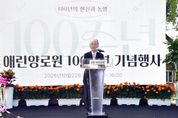 (포탈뉴스통신) 김제시는 용지면 소재 애린양로원(원장 한종욱)이 개원 100주년을 맞아 ‘100년의 헌신과 동행’이라는 주제로 22일 기념행사를 개최했다고 밝혔다. 이날 행사는 사회복지 관계자, 지역주민, 후원자 및 자원봉사자 등 약 300여 명이 참석한 가운데 애린양로원 야외공연장에서 진행됐다. 식전공연, 개회선언에 이어 사회복지법인 애린원 한규택 대표이사의 기념사를 시작으로 각계 인사의 축사가 이어졌다. 특히 애린양로원의 어르신 복지향상과 기관 발전에 기여한 단체 및 직원 등을 대상으로 전북특별자치도지사 표창, 김제시장 표창 등 총 8개의 수상이 이뤄져 기쁨의 영광을 누렸다. 한종욱 원장은 “오늘의 영광은 지난 100년간 함께해주신 모든분들의 헌신 덕분”이라며 “앞으로도 어르신들의 품격 있는 삶과 행복을 위해 한결같은 마음으로 노력하겠다”고 밝혔다. 정성주 김제시장은 “김제의 자랑스러운 애린양로원이 창립 100주년을 맞이하게 된 것을 진심으로 축하드린다.”며, “앞으로의 100년도 지역사회와 함께 숨 쉬며, 든든한 복지의 중심으로 우뚝 서기를 기대한다.”고 전했다. [뉴스출처 : 전라북도 김