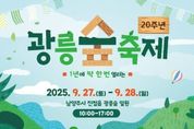 (포탈뉴스통신) 남양주시는 오는 27일과 28일 이틀간 진접읍 광릉숲 일원에서 ‘제20회 광릉숲축제’를 개최한다고 밝혔다. 광릉숲은 유네스코 생물권 보전지역으로 지정된 곳으로, 평소에는 일반인의 출입이 통제되지만 매년 축제 기간에만 시민들에게 개방돼 숲의 의미와 가치를 알리는 역할을 해왔다. 올해 축제는 20번째를 맞이해 더욱 특별한 의미를 담았다. 축제는 오전 10시부터 오후 5시까지 진행되며, 아름다운 광릉숲을 배경으로 다양한 친환경 축제 프로그램과 부대행사가 숲길 곳곳에서 다양하게 준비된다. 주요 프로그램은 광릉숲뚜벅이(숲길걷기), 광릉숲스무살(기념팝업), 광릉숲테이지(버스킹), 광릉숲사진관(포토존), 광릉숲선생님(숲해설), 광릉숲멍쉬멍(쉼터), 광릉숲만지작(체험), 광릉숲요가원(숲속요가), 광릉숲놀이터(나무놀이) 등이다. 부대행사로는 광릉숲마을장(플리마켓), 광릉숲사람들(시민참여공연), 광릉숲먹거리(먹거리부스) 등이 운영돼 시민들이 함께 만들고 즐기는 축제의 장이 될 예정이다. 개막식은 27일 오전 11시 봉선사 일주문 옆 메인무대에서 열리며, 국악인 하윤주와 테너 이동신이 축하