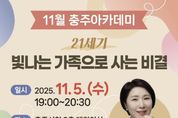 (포탈뉴스통신) 충주시는 오는 11월 5일 오후 7시 충주시청 3층 대회의실에서 숭실사이버대학교 이호선 교수를 초청해 ‘21세기 빛나는 가족으로 사는 비결’을 주제로 충주아카데미를 개최한다. 이호선 교수는 숭실사이버대학교 기독교상담복지학과 교수이자, 가족상담 및 노년심리 분야의 권위자로 잘 알려져 있다. KBS '아침마당', MBC '기분좋은 날', JTBC '이혼숙려캠프:새로고침' 등 주요 방송 프로그램에서 인간관계와 가족문제에 관한 따뜻하고 현실감 있는 조언을 전달하며 국민 심리 멘토로 자리매김한 바 있다. 또한, 「마흔의 기술」, 「이호선의 나이 들수록」 등 다수의 저서를 통해 현대사회에서 관계의 회복과 행복한 소통의 중요성을 꾸준히 전하고 있다. 이날 특강에서는 급변하는 사회 속에서 가족 간의 관계를 건강하게 유지하고, 세대 간의 공감과 존중을 회복하는 방법을 유쾌하면서도 깊이 있게 다룰 예정이다. 시 관계자는 “이호선 교수의 강연은 시민들이 가족의 의미를 다시 돌아보고, 일상 속에서 행복을 실천할 수 있는 계기가 될 것”이라며, “많은 시민들의 관심과 참여를 바란다”고 전했다.