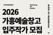 (포탈뉴스통신) (재)충주문화관광재단이 충주공예전시관 레지던시‘가흥예술창고’4기 입주작가를 오는 2월 2일까지 공개 모집한다고 밝혔다. 모집 대상은 시각예술 전 분야로 본 레지던시 입주경력이 없는 작가라면 누구나 지원할 수 있다. 모집 인원은 6명 내외로, 입주 기간은 3월부터 11월까지 9개월간이다. 입주작가에게는 개별 창작공간, 전시, 온·오프라인 홍보 등을 지원하며, 월별 창작활동을 원활히 수행한 작가에게는 소정의 창작지원금을 지원한다. 접수는 1월 16일부터 오는 2월 2일 오후 5시까지이며, 1차·2차 서류 심사와 3차 인터뷰 심사를 거쳐 2월 중 최종 합격자를 발표할 예정이다. 재단 관계자는 “작가들이 안정적인 창작환경에서 예술적 역량을 마음껏 펼치기를 기대한다”며, “새로운 시각과 실험적인 시도를 두려워 하지 않는 역량있는 작가들의 많은 관심과 참여를 바란다”고 전했다. 공모 관련 자세한 내용은 충주문화관광재단 홈페이지에서 확인할 수 있으며, 관련 문의는 문화사업팀으로 하면 된다. [뉴스출처 : 충청북도충주문화관광재단]
