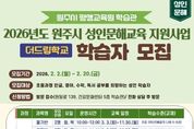 (포탈뉴스통신) 원주시 학습관은 2026년 성인문해교육 지원사업으로, 학력 취득 기회를 놓친 성인을 대상으로 한 기초·디지털 문해교육 ‘더드림(The Dream)학교’를 본격 운영한다. 이번 교육은 기초 성인문해교육과 디지털 문해교육을 통합한 원주형 성인문해교육 지원사업이다. 단계별 한글 교육 더디딤 4개 반(13명)과 맞춤형 심화 교육 더채움 4개 반(32명)으로 구성된다. 교육과정은 국가평생교육진흥원 성인문해 교재를 활용한 단계별 한글 교육을 중심으로, 맞춤형 생활 문해(영어·수학·독서)와 창의적 체험활동을 병행해 학습자의 일상 적응력과 자신감 향상을 도모한다. 학습자 모집은 2월 20일까지며, 전화로 사전 상담 후 학습관을 방문해 신청하면 된다. 수강료는 전 과정 무료이며, 학습 교재도 제공된다. 자세한 사항은 학습관 평생교육팀으로 문의하면 된다. 한편 학습관은 성인문해교육에 대한 사회적 공감대 확산을 위해 건강문화센터 1층 로비에서 학습자 시화 작품 전시회를 운영하고, 배움의 성과를 시민과 공유하는 홍보 활동도 함께 추진할 계획이다. 윤석재 학습관장은 “이번 교육은 배움의 기회를