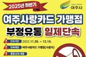 (포탈뉴스통신) 여주시는 지역화폐인 여주사랑카드의 부정유통 근절을 위해 지난 11월 26일부터 오는 12월 10일까지 집중 단속에 나선다고 밝혔다. 주요 단속 대상은 ▲ 물품의 판매 또는 용역의 제공 없이 지역화폐를 수취·환전하는 행위 ▲ 실제 매출금액 이상의 거래를 통하여 지역화폐를 수취·환전하는 행위 ▲ 가맹점이 등록 제한업종을 영위하는 경우 ▲결제를 거부하거나 다른 결제 수단에 비해 불리하게 대우하는 행위 ▲기타 단속이 필요성이 있다고 인정되는 경우 등이다. 이번 일제 단속은 가맹점 데이터 목록을 참고 및 주민 신고 등을 토대로 의심되는 현장을 방문해 확인하는 방식으로 진행된다. 여주시 일자리경제과 관계자는 “지역화폐 제도의 지속가능성, 신뢰성을 확보하고 지역 자금의 역외유출 방지를 위해서는 여주사랑카드 사용자와 가맹점주 모두 함께 힘을 합쳐야 건전한 유통 문화를 만들어갈 수 있다”협조를 당부했다. 부정유통 적발 시 여주사랑카드 가맹점 등록취소, 관계 법령에 따라 최대 2,000만원 이하의 과태료가 부과될 수 있으며, 위반행위 조사를 거부·방해 또는 기피하는 경우에도 최대 500만원 이하의 과