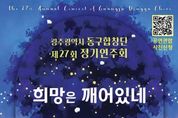 (포탈뉴스통신) 광주 동구는 동구합창단이 오는 28일 오후 7시 30분 국립아시아문화전당 예술극장 극장2에서 ‘제27회 정기연주회 희망은 깨어있네(Hope is Awake)’를 개최한다고 밝혔다. 이번 정기연주회는 ‘희망은 깨어있네’를 주제로 지역민에게 희망과 위로, 새로운 출발을 향한 용기를 전하는 무대로 꾸며진다. 정기 무대를 통해 올 한 해의 성과를 공유하는 것은 물론, 오페라 성악과 재즈‧국악 협연 등 다채로운 특별공연이 마련돼 관객들에게 더욱 풍성한 음악적 감동을 선사할 예정이다. 공연은 ▲어둠 속 작은 빛 ▲전통과 현대의 어울림 ▲삶의 기쁨 ▲귓가에 맴도는 오페라 아리아 ▲모두의 행복을 위한 노래 등 다섯 개의 파트로 구성되며, 주요 레퍼토리는 정중식 ‘나는 반딧불’, 서도민요 ‘큰애기 반봇짐’, 필리핀 민요 ‘Ay Ay Ay O Pag-ibig(오! 내 사랑)’, 푸치니 ‘피가로의 결혼’ 중 ‘나비는 더 이상 못 날으리’, 윤학준 ‘희망은 깨어있네’, 우효원 ‘아리랑’ 등으로 풍성하게 채워진다. 임택 동구청장은 “이번 공연이 구민들의 문화적 감수성을 높이는 계기가 되고, 지역 문화예술 발전에도 큰