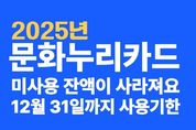 (포탈뉴스통신) 광주문화재단은 2025년 문화누리카드 사용기한이 12월 31일까지이며, 미사용 지원금은 자동 소멸한다고 밝혔다. 특히 연말까지 3만 원 이상 사용하지 않을 경우, 내년 자동 재충전 대상에서 제외될 수 있어 이용자의 주의가 필요하다. 올해 문화누리카드 지원금은 1인당 14만 원으로, 도서·영화·공연·테마파크·시외버스·KTX·체육시설·스포츠 용품·스포츠 관람·캠핑용품 등 다양한 분야에서 사용할 수 있다. 문화누리카드는 지역 축제에서도 활용할 수 있다. 올해 마지막 연계 축제인 ‘빛고을 사랑나눔 김장대전’에서는 김장체험과 김치 완제품 구매 시 문화누리카드 현장 결제가 가능하도록 운영되고 있다. 축제는 12월 14일까지 매일 오전 9시부터 오후 6시까지 진행된다. (문의 062-676-3601) 문화누리카드 이용자를 위한 전액소진 이벤트도 진행된다. 올해 지원금을 모두 사용한 뒤 12월 14일까지 인증하면, 총 107명에게 CU 모바일상품권(1만 원권)을 추첨 지급한다. 이벤트 인증은 광주문화누리 카카오톡 채널을 통해 참여할 수 있다. 한편, 문화누리카드 사용 가능 가맹점은 문화누리카드 누리집 또는 모