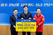 (포탈뉴스통신) 광주은행은 26일 전남도청에서 전남지역 복지사각지대 해소를 위한 광주·전남愛사랑카드 성금 6,360만 원을 전달했다고 밝혔다. 이날 전달식에는 김종민 광주은행 부행장과 강위원 전라남도 경제부지사, 김동극 전남사랑의열매 사무처장을 비롯한 관계자들이 참석해 지역사회 상생을 위한 뜻을 함께했다. 이번 기부금은 광주은행의 사회공헌형 금융상품인 ‘광주·전남愛사랑카드’ 이용 금액의 일부로 조성됐다. 광주은행은 앞서 지난 12월 1일에도 광주지역에 9,578만원의 광주·전남愛사랑카드 성금을 전달하는 등 지속적인 지역 나눔을 실천하고 있다. ‘광주·전남愛사랑카드’는 광주은행이 2018년 창립 50주년을 기념해 출시한 상품으로, 카드 수익의 일부를 고객이 지정한 광주·전남사회복지공동모금회에 기부하는 구조로 이뤄진다. 이를 통해 지역경제 선순환에 기여하고 있으며, 출시 이후 현재까지 광주·전남 지역에 약 20억 원의 기부금을 전달했다. 김종민 광주은행 부행장은 “광주·전남愛사랑카드에 보내주신 고객들의 성원과 고향사랑 실천 덕분에 뜻깊은 기부가 이어지고 있다”며 “앞으로도 지역사회에 실질적인 도움이 되는 상품과 서비스를 지속적으로 선보이며 지역민과의 상생을 강화