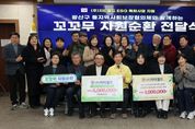 (포탈뉴스통신) 광주 광산구는 민관 협력으로 추진한 지난해 ‘꼬리에 꼬리를 무는 자원순환 나눔 활동’으로 버려진 이불, 의류 등 15톤 이상이 재활용되고, 이 수익에 기부가 더해져 총 800만 원이 지역사회에 환원됐다고 밝혔다. 27일 광산구청 2층 상황실에서 광산구 동 지역사회보장협의체 월례 회의와 연계해 ‘꼬꼬무 자원순환’ 수익금 전달식이 열렸다. ‘꼬꼬무 자원순환’은 광산구 동 지사협, ㈜지티월드, 투게더광산 나눔문화재단 등이 함께 자원순환을 실천하고, 그 수익금을 지역사회에 환원하는 사업이다. 각 기관‧단체는 지난해 4월 업무협약을 체결, 주민 참여를 바탕으로 소각 등 처리가 어려운 폐이불, 폐의류 등을 수거해 자원순환 업체에 연계하는 활동을 진행했다. 지난 한 해 광산구 전역에서 폐이불 약 13톤, 버려진 옷 2.1톤 등 15.2톤을 수거해 재활용하는 성과가 있었다. 광산구 동 지사협은 지난해 4월 1차로 폐이불 등 6.4톤을 수거‧재활용해 모인 100만 원의 수익금을 바탕으로 폭염 취약계층에 선풍기 등 냉방용품을 지원했다. 이날 전달식에선 2차 수익금 100만 원에 ㈜지티월드가 사업 취지에 공감해 추가로 쾌척한