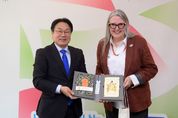 (포탈뉴스통신) 강기정 광주광역시장은 20일 시청 접견실에서 미쉘 윈트럽(Michelle Winthrop) 주한 아일랜드 대사를 접견, 광주와 아일랜드 간 애정과 협력 의지를 확인했다. 이날 접견은 지난 2024년 윈트럽 대사가 민주주의 정상회의를 계기로 광주를 첫 방문한 이후 2년여 만에 이뤄졌다. 오는 7월 아일랜드 귀국을 앞두고 ‘민주주의의 도시’에 대한 존경과 감사를 전하기 위해 광주를 찾은 윈트럽 대사는 코트 속에 한복 저고리를 곱게 차려입어 눈길을 끌었다. 윈트럽 대사는 “대사 임기가 끝나기 전, 제게 큰 감동을 준 광주에서 시간을 보내고 싶었다”며 “광주가 세계 민주화에 영향을 끼쳤다는 사실을 많은 아일랜드 사람들과 제가 잊지 않을 것”이라고 말했다. 강기정 시장은 “광주를 따뜻하게 기억해준 윈트럽 대사에 감사하다”며 “광주는 전 세계에서 누구도 부인할 수 없는 ‘민주주의의 도시’로 기억되고 있다. 이제는 광주만의 끼와 문화를 키워내 세계 어느 도시도 부럽지 않을 도시로 나아가겠다”고 다짐했다. 강기정 시장과 윈트럽 대사는 이어 종교 분야를 중심으로 한 광주와 아일랜드의 9