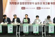 (포탈뉴스통신) 경기도의회와 제주특별자치도의회는 10월 24일 금요일 오후 2시, 경기도의회 2층 예담채에서 '자치법규 입법영향분석 실효성 제고를 위한 토론회'를 공동 개최했다. 이번 토론회는 지방의회의 자치입법 역량을 강화하고, 자치법규의 실효성을 높이기 위한 목적으로 마련됐으며, 양 의회 사무처장, 국회입법조사처 및 지방의회 자치법규 관계자 등 50여 명이 참석하여 열띤 논의를 펼쳤다. 주제발표로는 아주대학교 공공정책대학원 이진수 박사가 자치법규 입법영향분석 평가기준 개선방안에 대해 발표했다. 이어 한국법제연구원 차현숙 혁신법제본부장이 제주의 입법평가 사례를 바탕으로 입법평가의 실효성 확보 방안을, 김준 전 국회입법조사처 실장이 법률 입법영향분석 기준에 대해 각각 발표를 이어갔다. 사례발표로는 경기도의회 김홍 입법조사관이 도의회 사후입법영향평가 현황과 과제를, 국회입법조사처 이동영 입법조사관이 국회입법조사처 입법영향분석 사례를 소개했다. 이후 경복대학교 복지행정학과 이상미 교수를 좌장으로 한 자치법규 입법영향분석 제도의 실효성을 높이기 위한 종합토론이 진행됐다. 경기도의