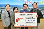 (포탈뉴스통신) 경산시사회복지행정연구회(회장 전현옥)는 1일 '희망2026나눔캠페인'에 동참하고자 회원들의 정성을 모아 성금 300만 원을 기탁했다. 전현옥 회장은 “사회복지직 공무원들은 어려운 이웃을 가장 가까이에서 만나 지원하는 만큼, 우리 지역에 소외되는 이웃이 없도록 마음을 모아 캠페인에 동참하게 됐다”고 전했다. 조현일 경산시장은“지역 복지 최일선에서 일하고 있는 사회복지공무원들이 매년 솔선수범해 나눔을 실천해 주심에 깊이 감사드린다”며“앞으로도 시민들의 복지 욕구를 충실히 살피고, 복지서비스 제공에 앞장서는 등불 같은 존재가 되어 주길 바란다”고 말했다. 경산시사회복지행정연구회는 경산시 사회복지직 공무원 약 170여 명이 참여하고 있으며, 회원 간 복지 정보 교류와 전문성 향상을 위해 활동하고 있다. [뉴스출처 : 경상북도 경산시]