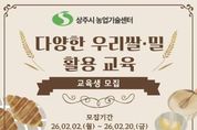 (포탈뉴스통신) 상주시농업기술센터는 2월 2일부터 2월 20일까지‘다양한 우리쌀·밀 활용 교육’교육생을 모집한다고 밝혔다. 이번 교육은 우리쌀 소비 촉진을 주도할 수 있는 농업인 전문리더 육성과 쌀중심의 우리 식문화에 대한 이해증진 및 올바른 정보 제공을 위해 마련됐으며, 농촌진흥청이 쌀의 가공 적합성을 높이기 위해 개발한 가루 전용 품종인 가루쌀을 활용한 실습 중심 프로그램을 통해 교육 효과를 한층 높일 계획이다. 교육 기간은 3월 10일부터 4월 9일까지 총 10회 과정으로 진행되며, 모집 인원은 A반, B반(2개반) 각 15명으로, 총 30명이다. 교육은 아몬드 쑥만주, 사브레 브라우니, 글라사쥬 파운드, 사과 장미케이크, 과일 찹쌀 타르트 만들기로 일상에서 활용할 수 있는 교육으로 실시할 예정이다. 미래농업과 서정현 과장은 “이번 교육을 통해 우리 쌀과 지역농산물의 우수성을 알리고, 나아가 우리쌀 소비를 촉진할 수 있는 좋은 계기가 될 것으로 기대한다”며,“관심있는 농업인 및 시민들의 많은 참여를 바란다”고 밝혔다. [뉴스출처 : 경상북도 상주시]