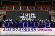(포탈뉴스통신) 진주시 자원봉사단체협의회(회장 심명환)는 6일 진주실내체육관에서 자원봉사자와 시민 등 2300여 명이 참석한 가운데 ‘2025 진주시 자원봉사자의 날 기념 한마음대회’를 성황리에 개최했다. 이번 행사는 자원봉사의 날(12월 5일)을 앞두고 마련된 자리로 한 해 동안 지역 곳곳에서 헌신과 나눔을 실천한 자원봉사자들의 노고를 격려하고, 시민과 함께 자원봉사의 가치와 의미를 되새기는 뜻깊은 시간이 됐다. 이날 행사에서는 △그동안 지역사회를 위해 힘쓴 봉사단체의 단체기 입장 △1년간의 자원봉사 활동 영상 상영 △유공자 표창 △감사 메시지 퍼포먼스 △단체별 장기자랑 등이 이어지며 웃음과 감동이 함께했다. 심명환 자원봉사단체협의회 회장은“11만 자원봉사자들이 진주시 곳곳에서 진심으로 헌신하고 있다”며“여러분들이야말로 진주의 희망이자 자랑”이라고 말했다. 조규일 진주시장은 “보이지 않는 곳에서 진심으로 봉사해 주신 모든 분들 덕분에 진주가 더욱 행복한 도시로 빛나고 있다”며, “앞으로도 자원봉사활동이 더욱 활발히 이어질 수 있도록 행정적 지원을 아끼지 않겠다”고 말했다. 한편 현재