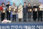 (포탈뉴스통신) 전주시가 각자 자신이 활동하는 분야에서 빛을 발하며 전주를 대한민국 대표 문화도시로 만드는 데 앞장선 예술인들을 선정해 시상했다. 시는 24일 문화공판장 작당에서 지역 문화예술 발전에 기여한 예술인의 공로를 기리기 위한 ‘제36회 전주시 예술상 시상식’을 개최했다. 전주시 예술상은 전주시를 대표하는 문화예술상으로, 시는 각 분야에서 뛰어난 예술적 성과와 지역 문화예술 진흥에 기여한 예술인을 해마다 선정해 시상하고 있다. 올해 전주시 예술상 수상자는 지난달 26일 열린 예술상 선정 심사위원회의 엄정한 심사를 거쳐 문학 부문의 이연희 씨 등 8개 부문 8명의 수상자가 결정됐다. 영광의 제36회 예술상 수상자는 △문학 부문=이연희 석정문학회 부회장(67세, 여) △음악 부문=소중연 바흐챔버플레이어스 대표(59세, 남) △국악 부문=김형태 (사)전북민족예술인총연합 전주지부 상임연출(49세, 남) △무용 부문=박현희 박현희무브먼트 예술 총감독(51세, 여) △미술 부문=이철규 예원대학교 객원교수(65세, 남) △사진 부문=박성민 사진전문갤러리 봄 대표(53세, 남) △연극 부문=최성욱 극단