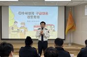 (포탈뉴스통신) 강진소방서(서장 정용인)는 지난 1일 무위사 IC 인근에서 발생한 차대차 교통사고와 관련하여, 현장 대응 활동의 적정성을 분석하고 향후 유사 사고 발생 시 효율적인 대응 체계를 구축하기 위한 ‘다수사상자 구급대응 검토회의’를 개최했다고 밝혔다. 이번 회의는 '재난안전법' 및 '긴급구조대응활동 및 현장지휘에 관한 규칙' 등에 근거하여 마련됐으며, 대응구조과장을 통제관으로 하여 사고 당시 현장에 출동했던 강진지휘대, 구급대, 구조대 등 주요 관계자들이 참석한 가운데 진행됐다. 검토 대상이 된 사고는 목포~강진 방면 무위사 IC 인근에서 소렌토 차량이 전방의 시에나 차량을 추돌한 뒤 가드레일 위로 정차하며 발생한 사고로, 총 10명(중상 2명, 경상 7명, 미이송 1명)의 사상자가 발 생한 긴박한 상황이었다. 이날 회의에서는 ▲현장 지휘 및 통제 ▲환자 분류 및 이송 ▲기관 간 협력 ▲개선사항 도출 등과 같은 주요 사항들이 집중적으로 논의됐다. 정용인 강진소방서장은 “다수사상자가 발생하는 교통사고는 신속하고 정확한 중증도 분류와 이송 병원 선정이 인명 피해를 최소화하는 핵심”이라며, “이번 검토회의에