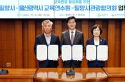 (포탈뉴스통신) 울산교육연수원은 21일 밀양시청 소회의실에서 경남 밀양시, 밀양시관광협의회와 지역 자원을 활용한 현장 체험 연수 지원 등을 내용으로 하는 업무협약을 체결했다. 이번 협약은 밀양시가 보유한 교육 관광 자원을 적극 활용해 교직원의 연수 참여 기회를 확대하고 교직원의 역량을 높이고자 추진됐다. 이번 협약으로 밀양시는 주요 교육 관광 자원의 정보를 제공하고 관광협의회는 프로그램을 연계 지원한다. 울산교육연수원은 이번 협약에 따라 오는 11월 밀양시 단장면에 있는 선샤인 밀양 테마파크에서 지방공무원과 교육공무직원을 대상으로 현장 체험형 연수를 진행할 예정이다. 한현숙 원장은 “이번 협약은 교육, 문화, 관광을 통합한 연수 프로그램 운영의 토대를 마련했다는 점에서 큰 의미가 있다”라며 “앞으로도 지역 자원을 교육 제작물로 적극 활용해 연수생에게 현장 중심의 체험 기회를 제공하겠다”라고 말했다. [뉴스출처 : 울산시교육청]