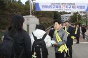 (포탈뉴스통신) 경산교육지원청은 2025년 11월 13일 경산․청도지역 8개 시험장 학교에서 2,591명의 학생이 2026학년도 대학수학능력시험을 치른다고 밝혔다. 정수권 교육장과 직원들은 경산고등학교, 사동고등학교 시험장 입구에서 수험생들을 맞이하여 응원과 격려의 메시지를 전했다. 정수권 교육장은 ‘학생들이 긴 시간 준비해온 만큼 평정심을 가지고 시험에 임해 좋은 결실을 맺길 진심으로 바라며, 또한 자녀와 학생들을 위해 아낌없는 사랑과 지도를 해주신 학부모님과 선생님들께 깊이 감사드린다’라고 했다. [뉴스출처 : 경상북도경산교육지원청]