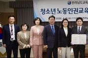 (포탈뉴스통신) 전라남도교육청은 4월 8일 청사 5층 비즈니스실에서 한국노동조합총연맹 전남본부와 ‘청소년 노동인권 보호·증진’을 위한 업무협약을 체결했다. 이번 협약은 청소년의 노동인권 의식을 높이고 노동인권 교육을 활성화해, 청소년이 안전하고 존중받는 노동환경 속에서 건강한 사회 구성원으로 성장할 수 있도록 지원하기 위해 마련됐다. 양 기관은 이번 협약에 따라 ▲ 청소년 노동인권 보호·증진을 위한 교육 프로그램을 개발·운영 ▲ 현장실습․아르바이트 등 청소년 노동환경에 발맞춘 노동인권 교육 등에 협력을 강화한다. 이를 통해 학생들이 노동의 가치와 함께 자신의 권리를 올바르게 이해하고, 실제 상황에 필요한 노동인권 감수성을 키울 수 있을 것으로 기대된다. 전남교육청은 앞으로 청소년의 눈높이에 맞는 노동인권 교육을 보다 체계적으로 추진하고, 학교와 지역사회가 함께하는 노동인권 보호 기반도 더욱 확대해 나갈 방침이다. 김대중 교육감은 “청소년들이 현장실습이나 아르바이트 등 다양한 노동 현장에서 자신의 권리를 제대로 알고 존중받는 것은 매우 중요하다.”며 “이번 협약을 계기로 노동인권 교