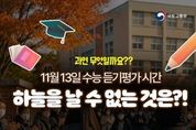 (포탈뉴스통신) 하늘을 날 수 없는 것들은? ■ 전면 통제대상 · 모든 항공기 이륙 금지 (비행 중 항공기 → 3km 이상 상공에서 대기) · 헬기 · 경량항공기 그리고 초경량 비행장치(드론 포함) 모두 STOP! * 예외: 비상·긴급 항공기 영어 듣기평가에 방해가 되는 '항공기소음 최소화' ■ 언제 통제되나요? 11월 13일(목) 13:05~13:40(총 35분) ※ 듣기평가 전·후 5분 포함 수험생에게 조용한 하늘을! 국민 여러분의 협조를 부탁드립니다. [뉴스출처 : 국토교통부]