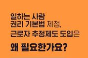 (포탈뉴스통신) 일하는 사람 권리 기본법 제정, 근로자 추정제도 도입은 왜 필요한가요? 제대로 알려드립니다. Q1. 일하는 사람 권리 기본법 제정, 근로자 추정제도 도입은 왜 하는건가요? AI 혁신, 플랫폼 경제 급성장 등 대전환의 시대에 새롭게 발생하는 모든 형태의 일하는 사람을 보호하기 위함입니다. Q2. 그럼 플랫폼종사자, 프리랜서 등은 모두 근로기준법상 근로자가 되는 건가요? 근로기준법상 근로자의 개념이 바뀌거나 확대되는 것은 아닙니다. Q3. 근로기준법상 근로자 개념이 확대되는 게 아니라면, 플랫폼종사자, 프리랜서 등은 보호되지 않는 것 아닌가요? 플랫폼종사자, 프리랜서도 일하는 사람 권리 기본법에 따라 보호될 수 있습니다. 또한, 근로자 추정제도를 통해 근로자임에도 입증하지 못해 근로자로 인정받지 못했던 사람들을 확실히 보호하면서, 가짜 3.3 감독을 통해 현장의 잘못된 관행을 바로 잡아나가겠습니다. Q4. 일하는 사람 권리 기본법은 선언적 규정이라고 하던데, 그럼 실효성이 없는 것 아닌가요? 기본법은 일하는 사람의 인권, 경제적 권리, 사회보장 권리 등을 규정하고 있으며, 경제적 권리