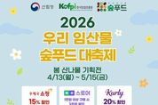 (포탈뉴스통신) ■ 2026 우리 임산물 숲푸드 대축제 봄 산나물 기획전: 4/13(월) ~ 5/15(금) · 우체국 쇼핑: 15% 할인 · N+스토어: 1만원 이상 구매 시 3천원 할인 · Kurly: 20% 할인 임산물 전용관 상시 운영 기획전 기간 할인 프로모션 적용 [뉴스출처 : 산림청]